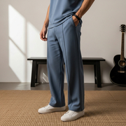 Luxury Knit Pintuck Pants - Mid Blue